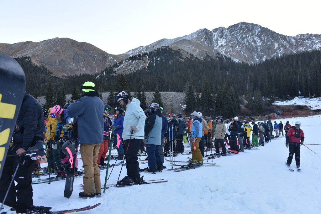 A-Basin President and Chief Operating Officer Alan Henceroth said he’s learned to never underestimate people’s desire to get their skis or boards on snow, even if it means getting a spot in line the day beforehand. He said it takes a year-round, group effort to be one of the first ski areas in the area to open and credits the snowmakers and groomers with helping push them through to the finish line.