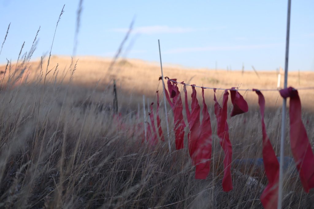 One of the most seemingly simple, yet effective, tools is fladry, which involves tying a line of interspersed flags — often red in color — around a perimeter. The red flags flapping in the wind can trigger an innate fear and avoidance in wolves. That fear response can be reinforced when the fladry is electrified.