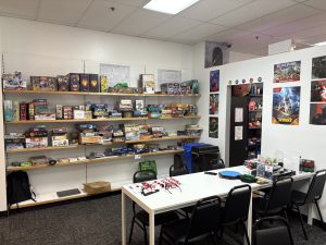 During open gaming hours, visitors can pay a $5 fee to use the game room, either bringing their own game or playing any of the ones stored in the room. Options range from World of Warcraft: The Boardgame and Civilization: A New Dawn to Ticket to Ride and Codenames.