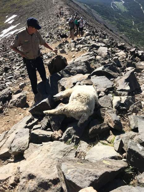CPW reported Saturday that the two mountain goats had been shot on the trail at around 3:30 p.m. on July 3. The goats were found 40 feet apart, about a half mile from the Quandary Peak summit. The goats were shot with a pistol at point-blank range and their remains were left on the mountain.
