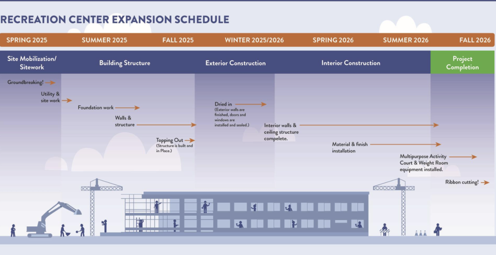 Council member Erin Young wondered how long the temporary relocation would last. Herrman said his team is “mentally prepared” for the Kid’s Korner to remain in that area until the end of construction, which is expected to be completed in fall 2026.