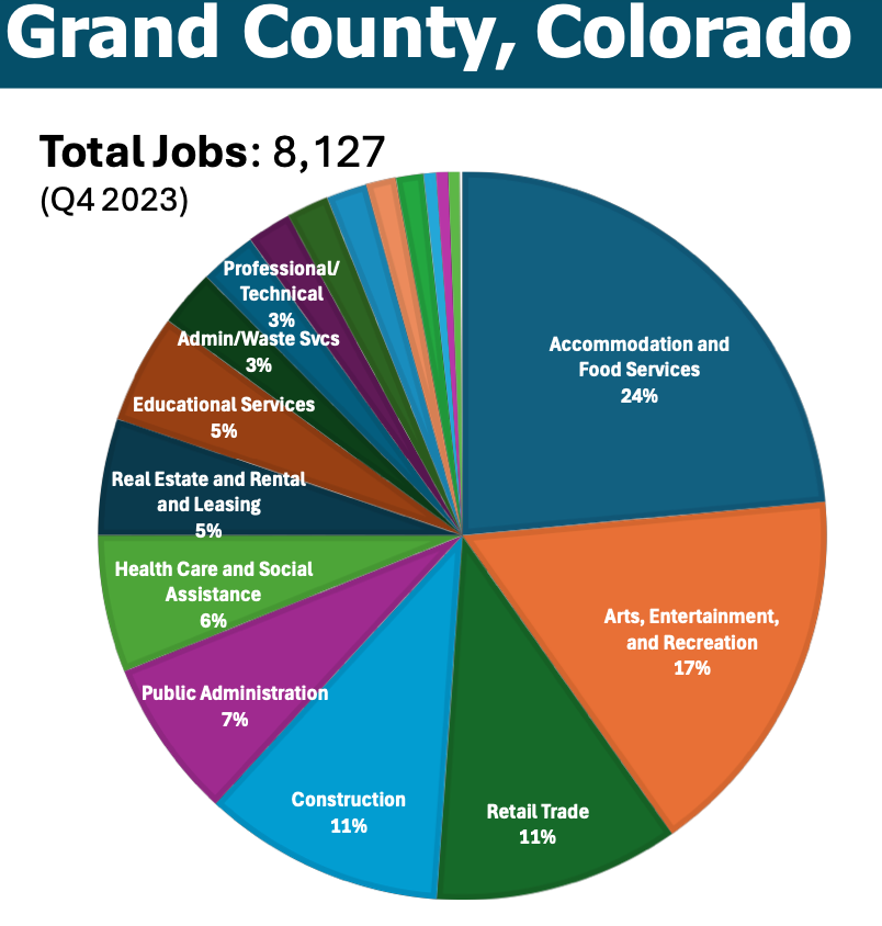 Pitkin County also has accommodation and food industry jobs accounting for a large portion of its total at 24%, yet the wages these workers make are significantly higher than in Grand. Data shows workers in these industries make an average salary of $51,168. Eagle County has the second-highest regional wages in these industries at an average of $41,288.