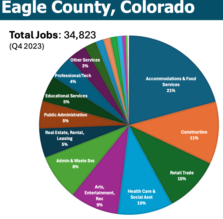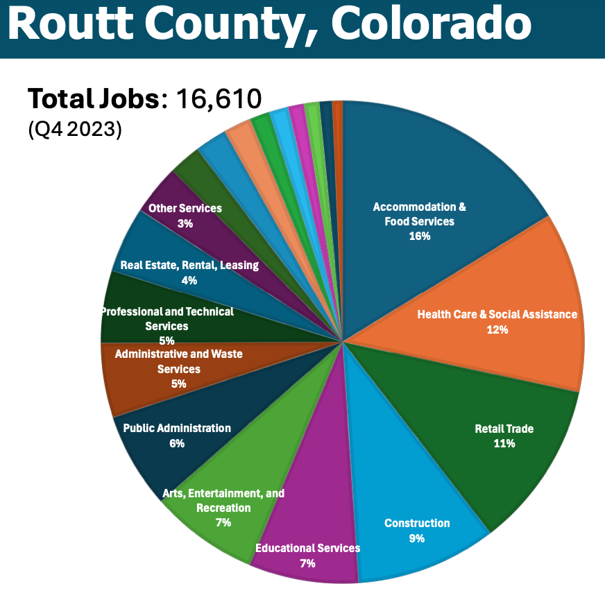 “In Routt County, 12% of jobs are in the health care and social assistance industry, which tends to be higher-skilled jobs which require a certain amount of education and training and pays higher wages,” Tuyn said, noting the industry pays an average salary of $75,452 in Routt.