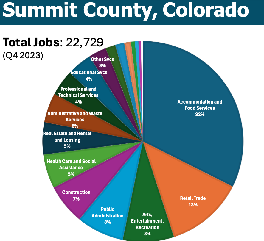 Summit County has the largest percentage of accommodation and food service jobs in its workforce out of the five counties, accounting for 32%. Tuyn said it is considered one of the primary contributing factors causing Summit’s average wage to lag behind counties that are considered to have a similar cost of living.