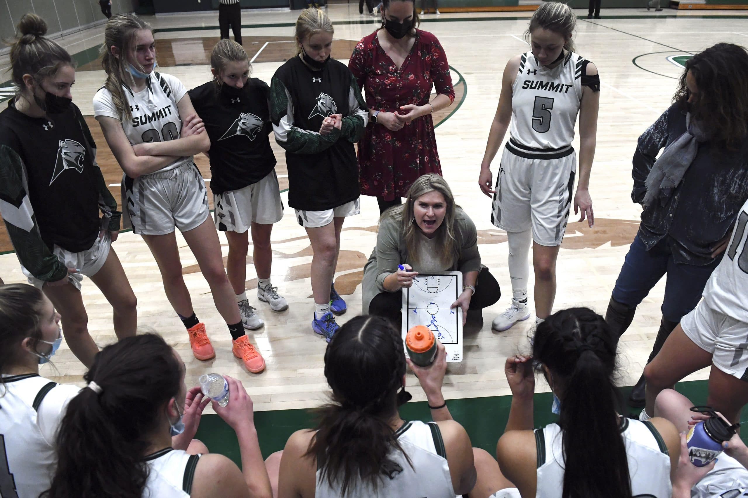 Canon City went on a run early in the game to go up 8-0 before Summit Tigers head coach Kayle Walker Burns called a timeout to stabilize her team.