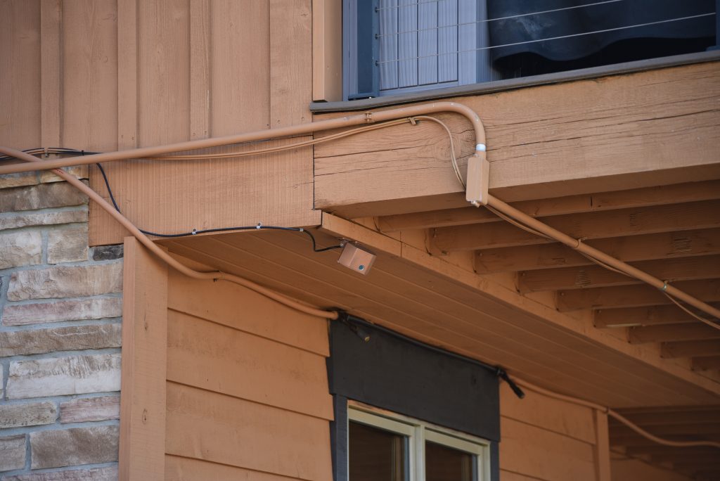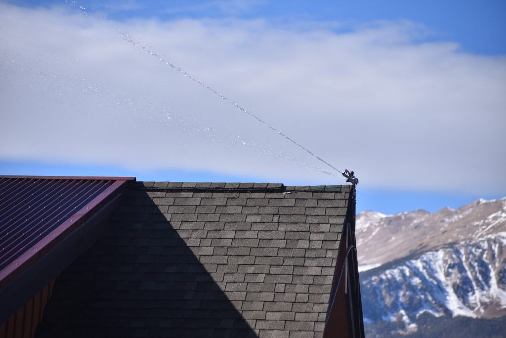 Installations at different properties can vary, but the prototype installed on the Dolamores’ home outside Silverthorne has around 58 small nozzles around the house and two large sprinklers on the roof, Dolamore said.