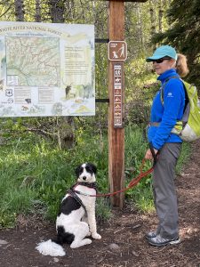 Many of our local favorite trails head directly into wilderness areas: Eagles Nest, Holy Cross, and Ptarmigan Peak. Here, it’s required by federal regulation to have your dog on a physical hand-held leash no longer than 6 feet. The leash regulation applies year-round and at all times: “Pets are required to be on a leash to protect wildlife, other visitors’ experience, and your privilege to have them with you.”
