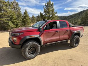 Again, the powertrain has not been touched, meaning a 16-mpg 2.7-liter Turbomax rated at 310-hp and 430 lb-ft of torque. All the aforementioned gear pushes this Canyon to nearly 5,000 pounds and it would be delightful to have some extra juice; like my experience in one of the new turbocharged Tacomas, the Canyon’s turbo gave up the ghost at the top of Idaho Springs’ long and steep Two Brothers Road, but recovered on flatter terrain.