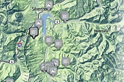 Click the arrows or the markers on the map (double-click to zoom in) to see videos, photos, maps and descriptions of the top advanced trails throughout Summit County.