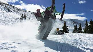 BB: I was a bit nervous, but I wouldn’t say it was something I couldn’t handle. I’d been in front of cameras before — on the course, in the scene as a flagger — but I’d never actually been riding. I generally only get nervous when I’m not prepared and I had literally less than a week to get everything in line: get my sled, get sponsors, get the sled past “tech.” There were tons and tons of people who helped, and there was no way I could’ve done it without the help of local business in Lake and Summit counties, and friends and family as well. I had people coming out of the woodwork, not because they wanted to be involved or get their mug on TV, but because they knew I had this dream. It was to show other people with disabilities that they can ride a snowmobile on Vail Pass or back in Wisconsin or anywhere. If you want to snowmobile, you can do it. Now, I met all these guys I’m riding against who are missing limbs and that’s motivating me even more.