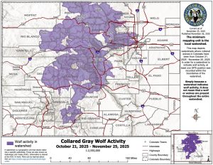 Oct. 30, 2025: A female wolf that was brought from British Columbia died in southwest Colorado. The cause of death is under investigation.